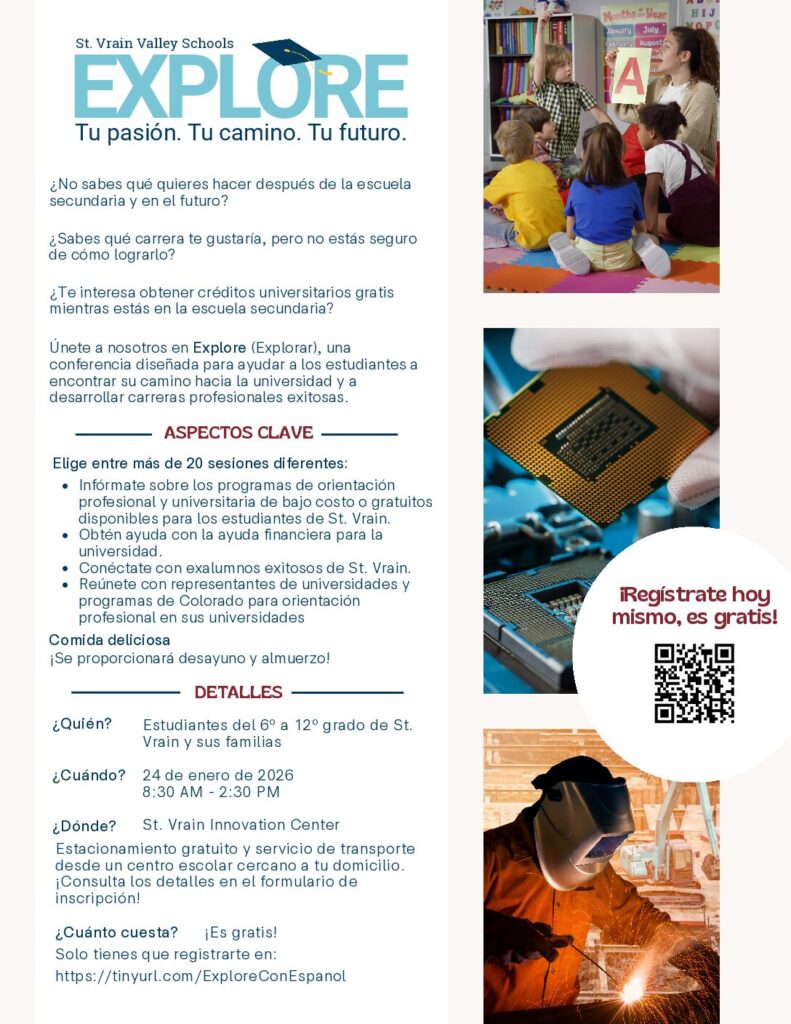St. Vrain Valley Schools invites the community to attend the Future Ready Festival. This district-wide open house allows visitors to explore the innovative programs and pathways that define the St. Vrain Advantage. Date & Time Saturday, March 72:00-6:00 p.m. Location Silver Creek High School Who Should Attend Families, students, educators, alumni, community members, partners, and […]