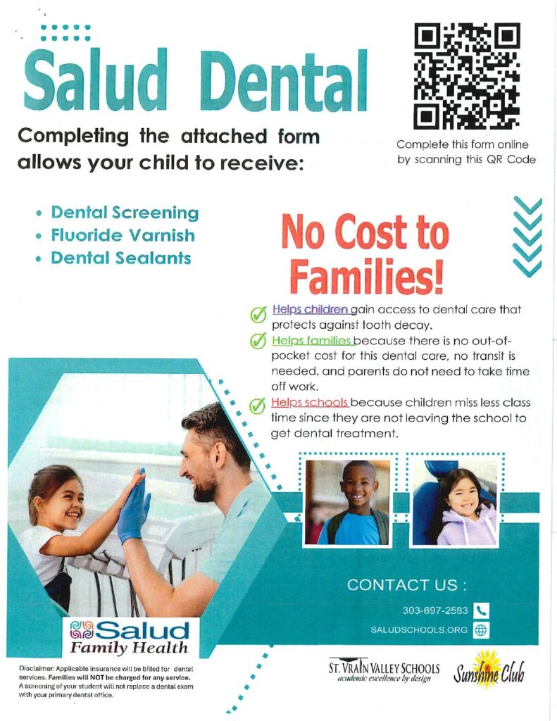 Raptor Families, on Monday February 23rd, Salud Dental will be at Thunder Valley performing optional brief dental screenings, fluoride varnish and dental sealants to students. This service is FREE. If you are interested in having your child participate, please either complete a permission form in the front office or complete it online at saludschools.org. If you have already completed the permission form this school year you may disregard this message.